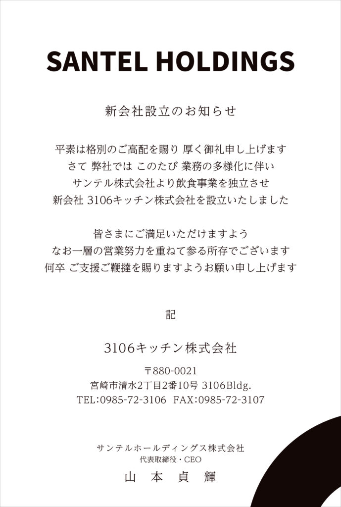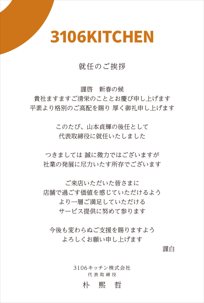 新会社設立および就任ご挨拶【3106キッチン株式会社】