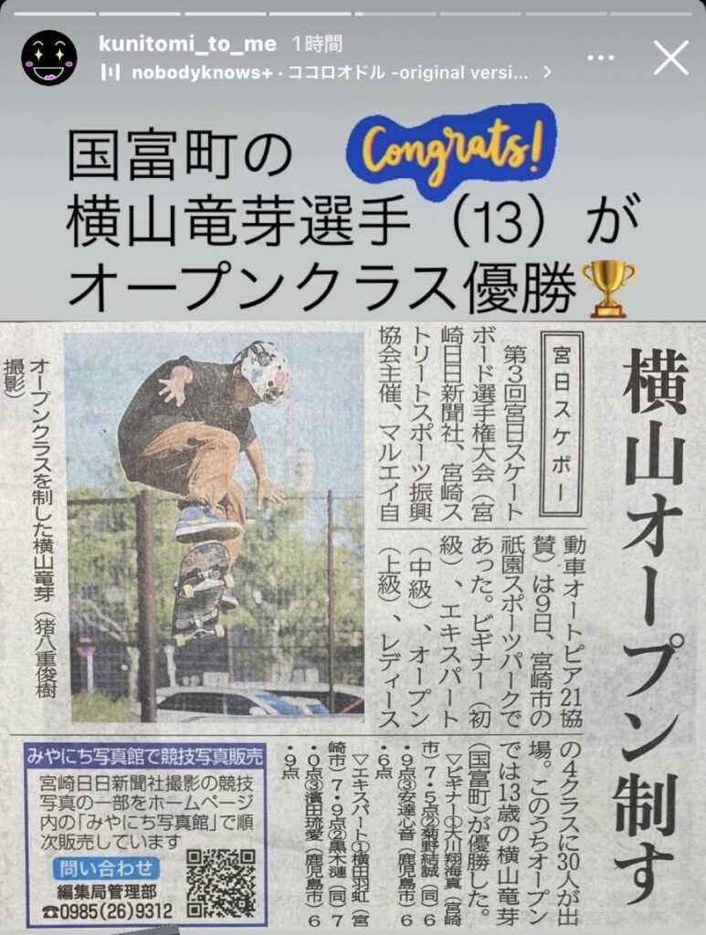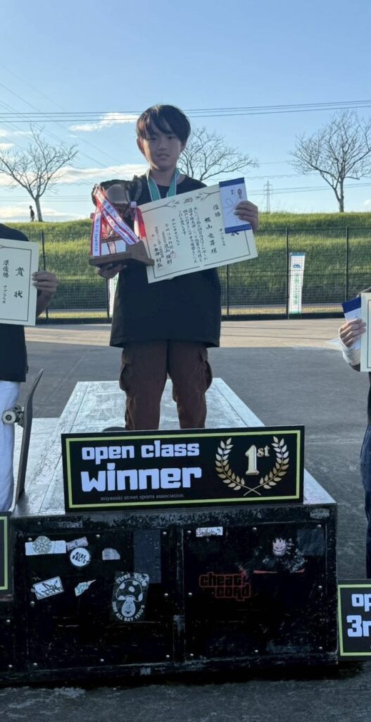 先日孫2号が宮崎市で行われた「宮日スケートボード選手権大会」オープンクラス(上級)で
