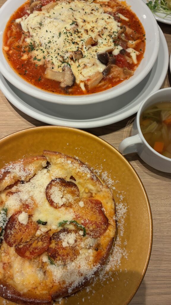 メインはスープパスタとシカゴピザを選びました🍕